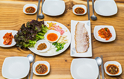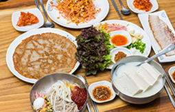 돼지고기 수육, 손두부, 메밀전병, 감자전 등